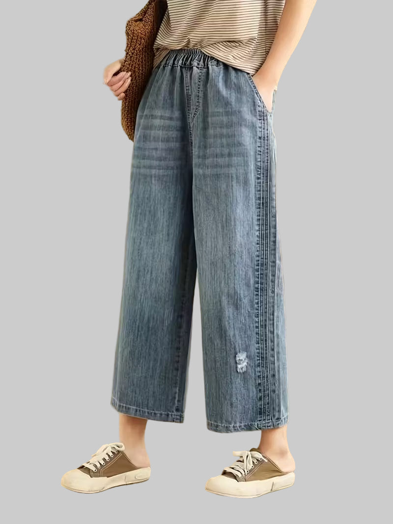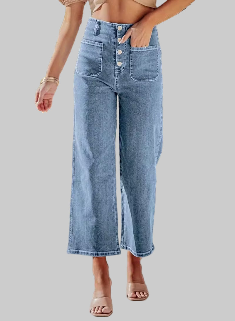 Damskie Dżinsy z Szeroką Nogawką o Skróconej Długości